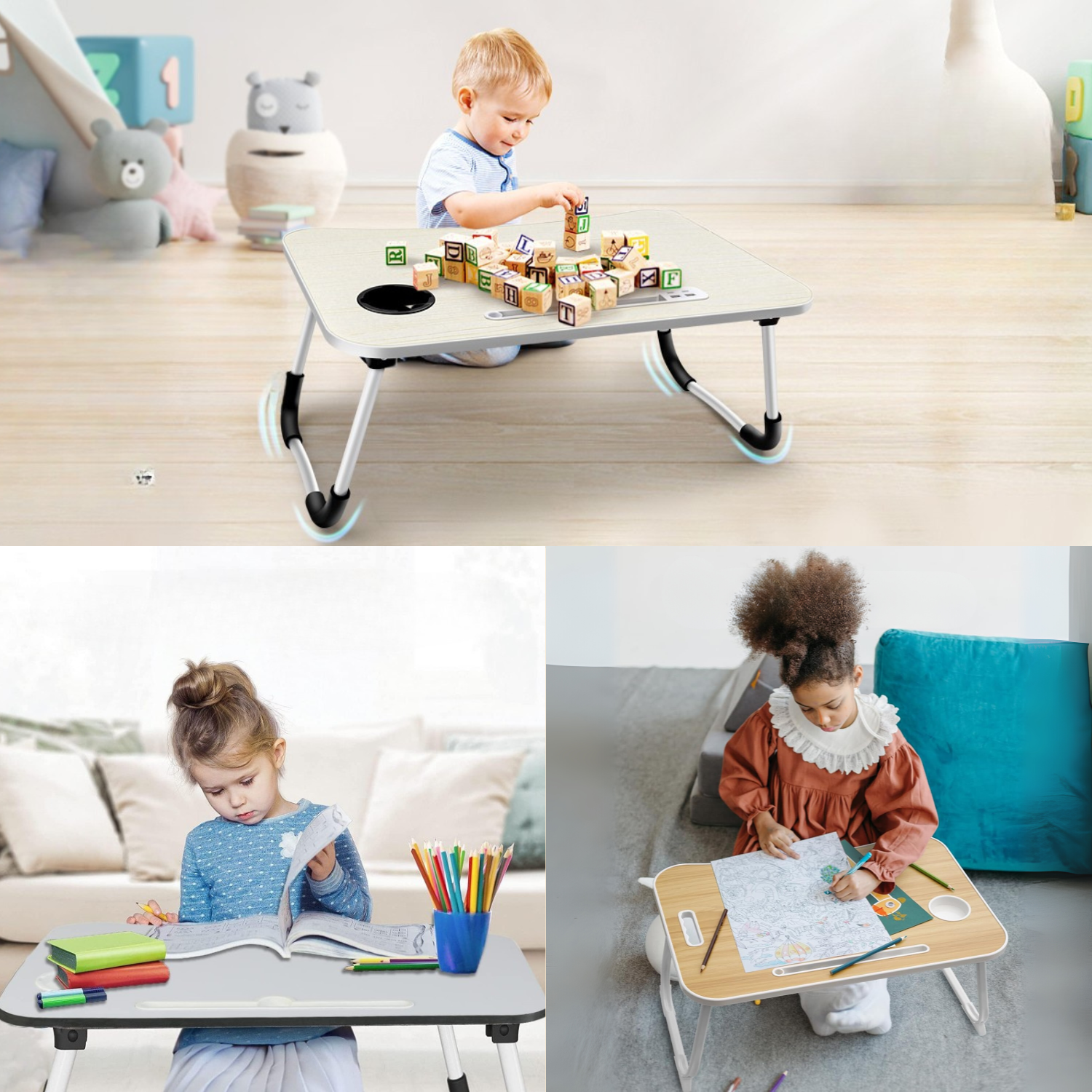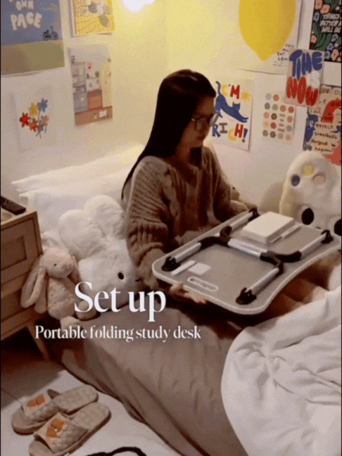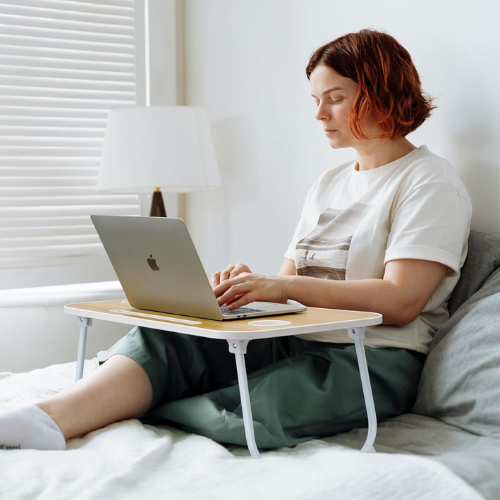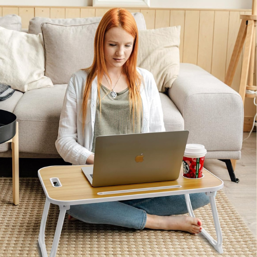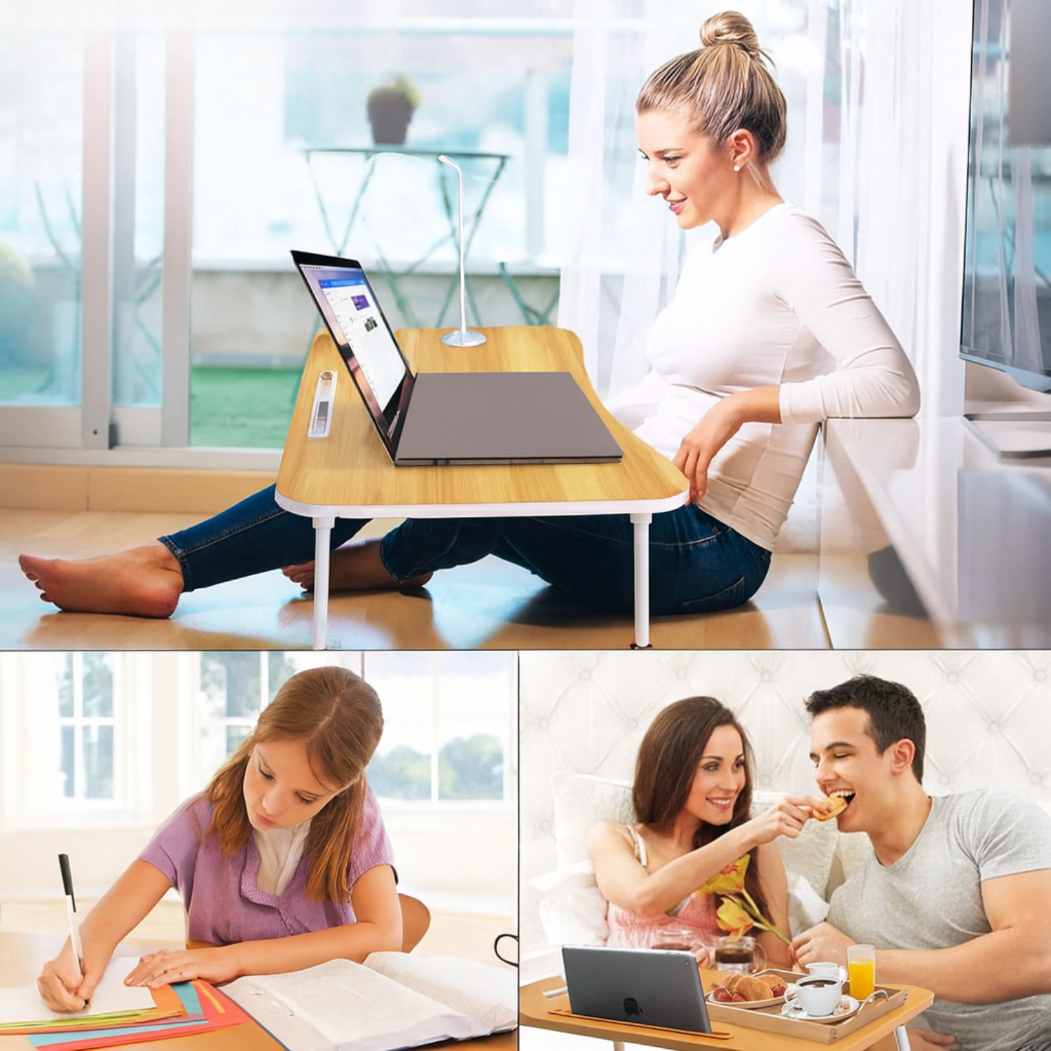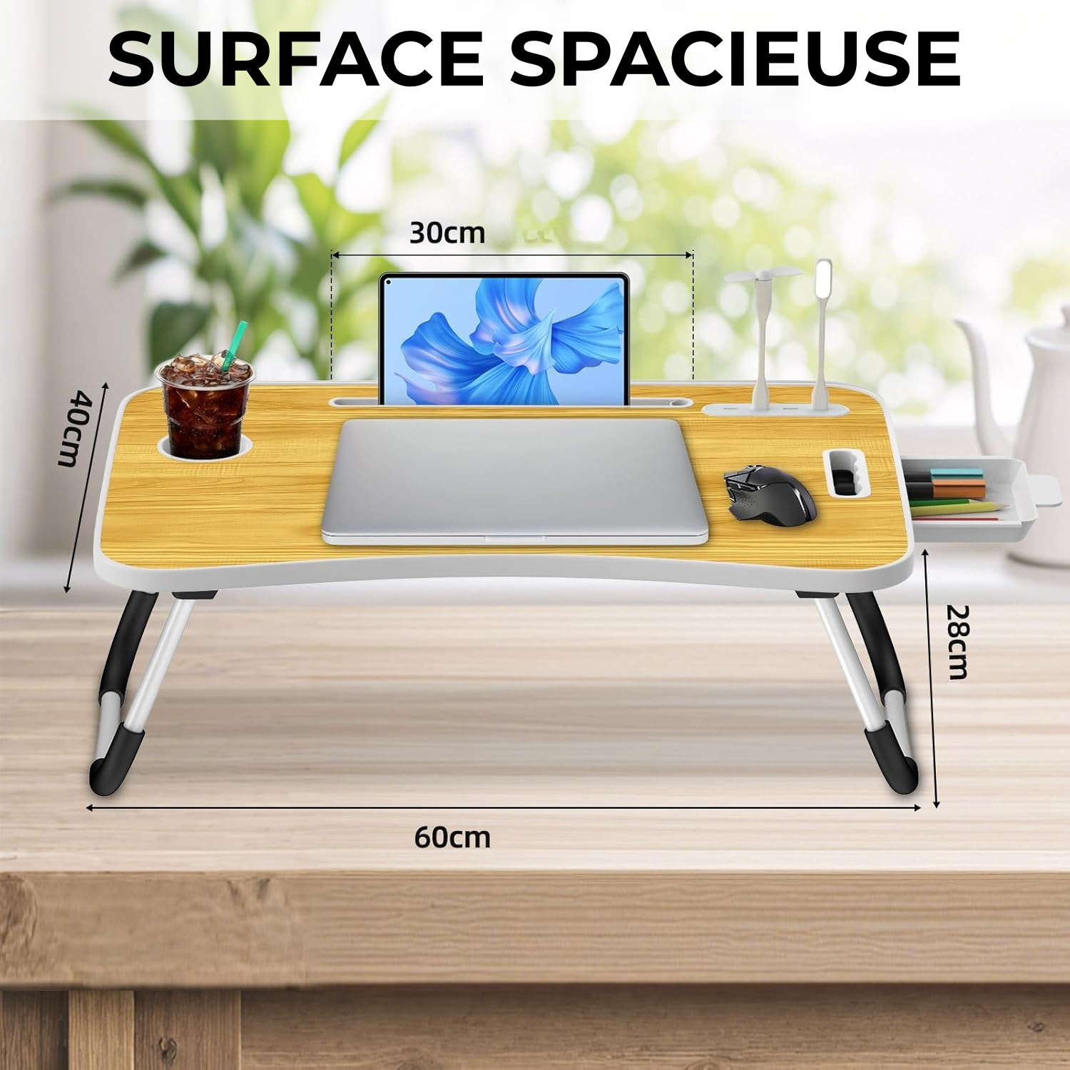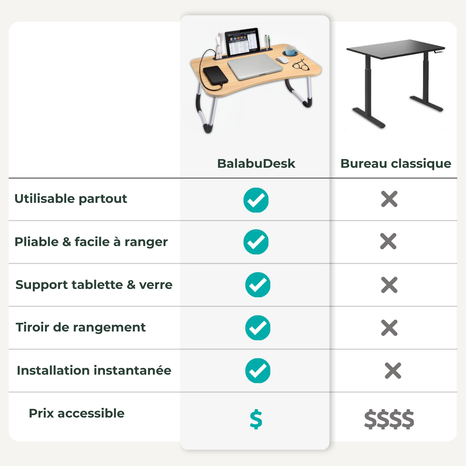 - Un bureau portable : installez-le où vous voulez — lit, canapé ou sol.